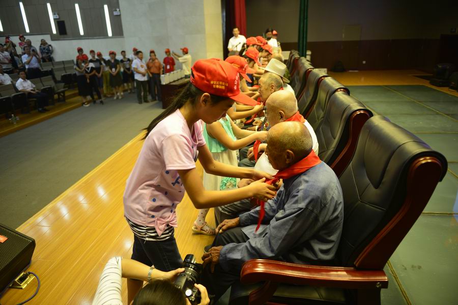 為抗戰(zhàn)老兵敬獻(xiàn)紅領(lǐng)巾