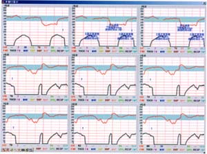 可以同屏顯示長達(dá)一小時(shí)的監(jiān)護(hù)信息,對監(jiān)護(hù)信息縱覽無疑,對整個(gè)監(jiān)護(hù)信息的觀察分析診斷極為方便。