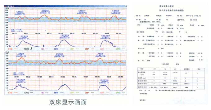 ◆自動分析:監(jiān)護(hù)過程中,系統(tǒng)實時在線自動分析所有參數(shù)的變化情況,并給出診斷結(jié)果及胎兒評分等相關(guān)信息。